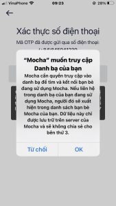 Bước 2: Sau khi tải xong, ở lần cài đặt ứng dụng đầu tiên Mocha sẽ yêu cầu bạn cấp quyền truy cập: Danh bạ, truy cập các tệp tin, xem và gửi tin nhắn, thực hiện và quản lý tất cả các cuộc gọi. Khi đó bạn hãy bấm vào ô “Đã hiểu” và chọn “Cho phép” để chấp nhận cung cấp quyền truy cập cho ứng dụng.